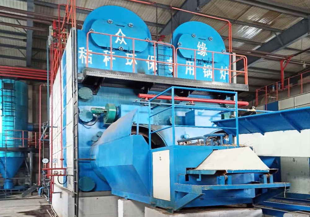 2019年安裝4臺(tái)6噸1.25MPa的眾緣秸桿專用蒸汽鍋爐,主要用千食品加工,24小時(shí)生產(chǎn),日用汽量約150噸、消耗秸桿約50噸,年消耗秸桿1.8萬噸,有效替代燃煤(熱值5000大卡)約9000噸。