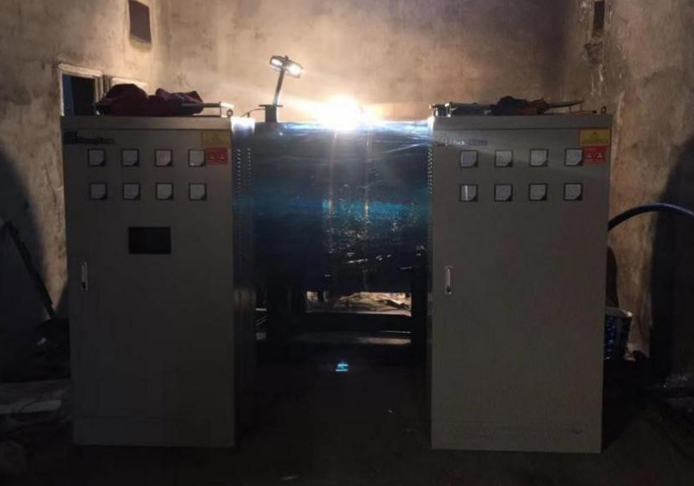 眾緣 600KW 電熱水鍋爐采用控制和爐體分體式,2 臺(tái)電控箱,避免了電器元件受熱,采用彩色觸摸屏控制系統(tǒng),運(yùn)行過程實(shí)現(xiàn)全自動(dòng)化, 全中文操作界面實(shí)現(xiàn)人機(jī)對(duì)話。